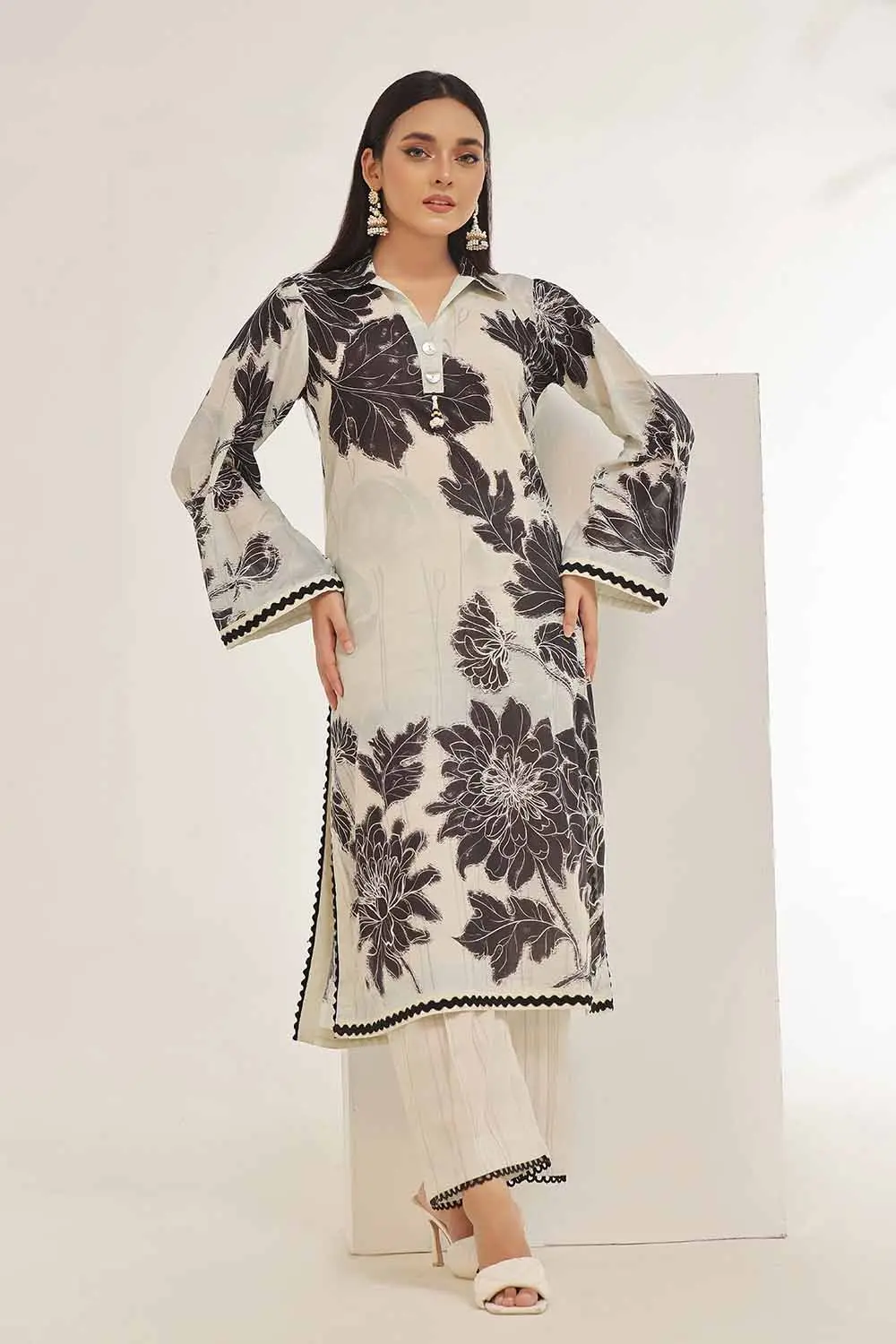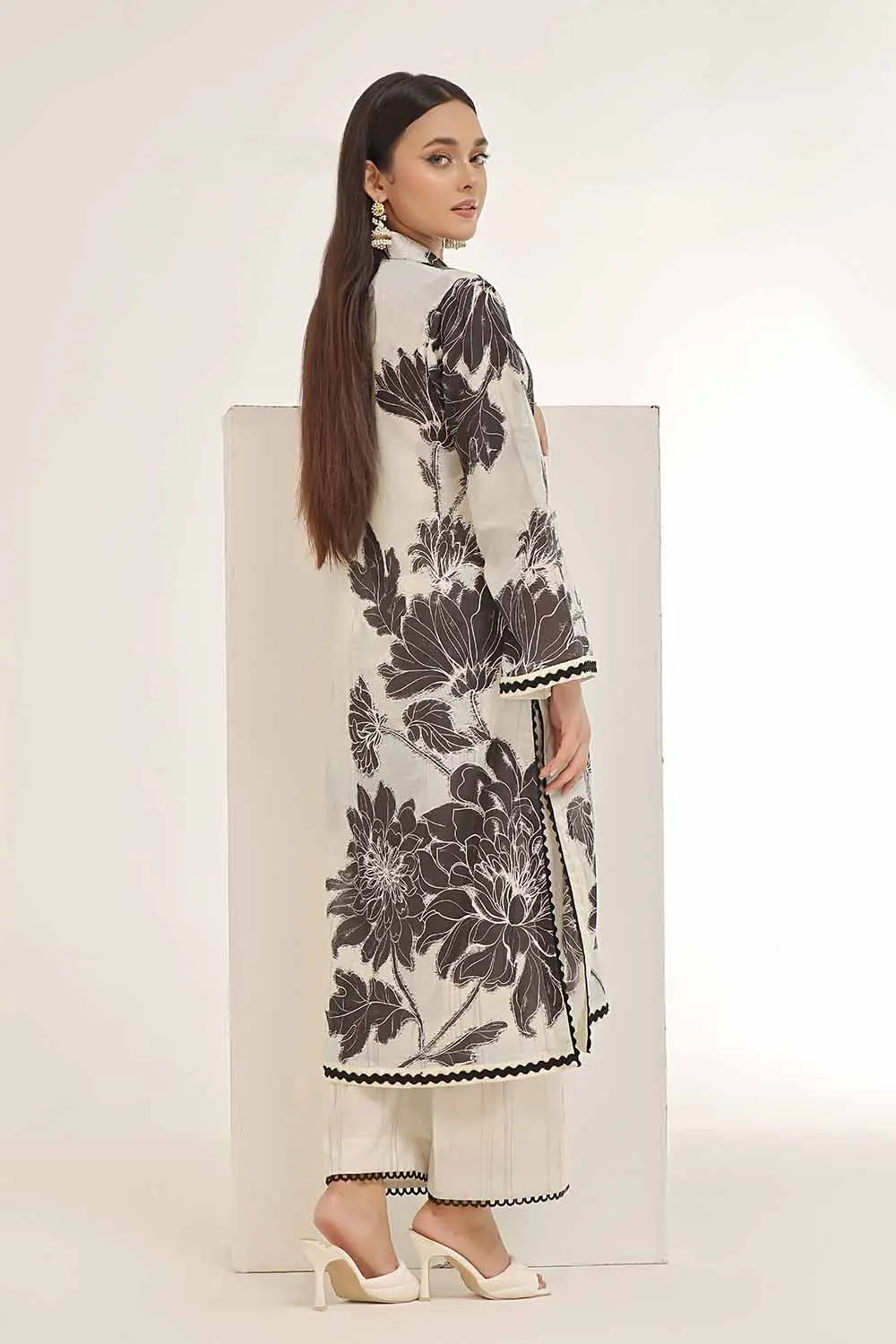 Epitomizing understated luxury, our pearl-toned lawn suit shimmers with delicate tonal embroidery. The 1.75 meter shirt fabric features a barely-there geometric print that catches the light, while matching trousers offer versatility. Woven from extra-long staple cotton, this set boasts a silky hand feel with crisp body that holds structured silhouettes beautifully. A blank canvas for personalization – add French seams, delicate pintucks, or statement collars to create your signature look.